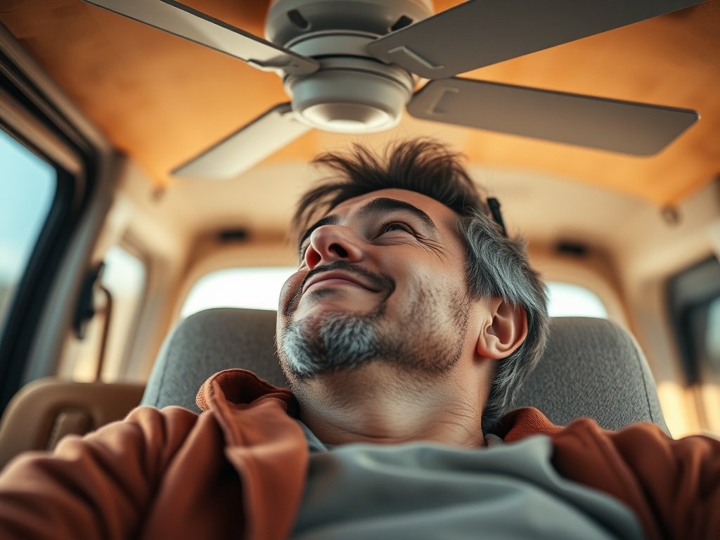 The combination of a hanging spider plant, light wood fixtures, and tatami mats creates a balanced and serene environment in this Japandi van.
