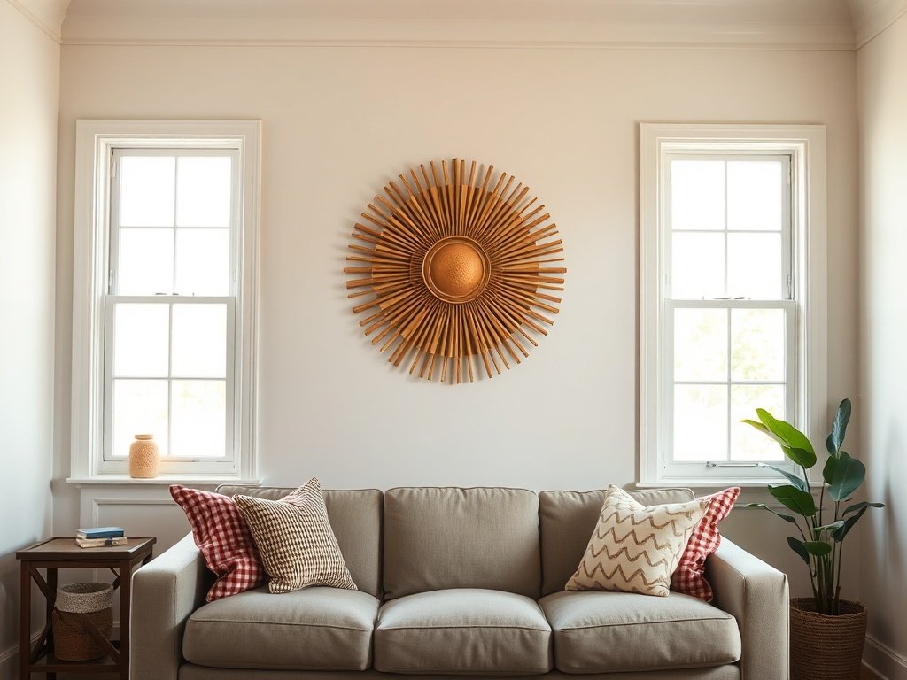 Home » 27-Inch Handmade Sunburst Wall Art: Turn a Blank Farmhouse Wall Into a Finished Focal Point