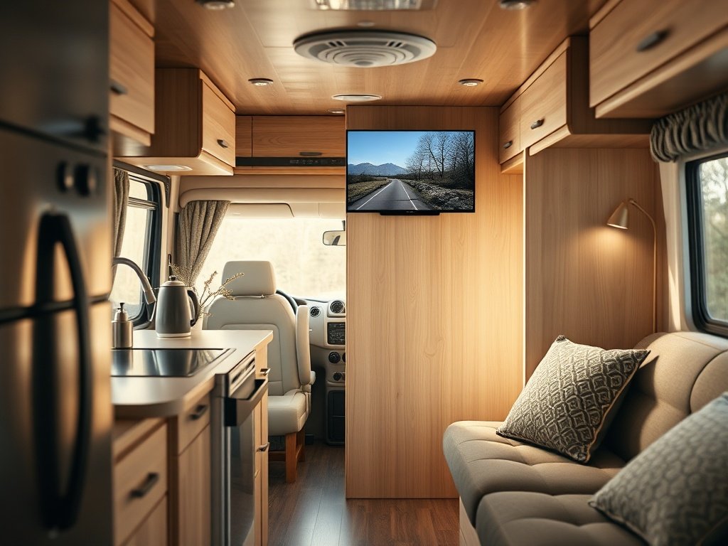 When the screen matches the room, the whole space feels more finished. That matters in an RV or camper van, where a cluttered setup can make everything feel temporary.