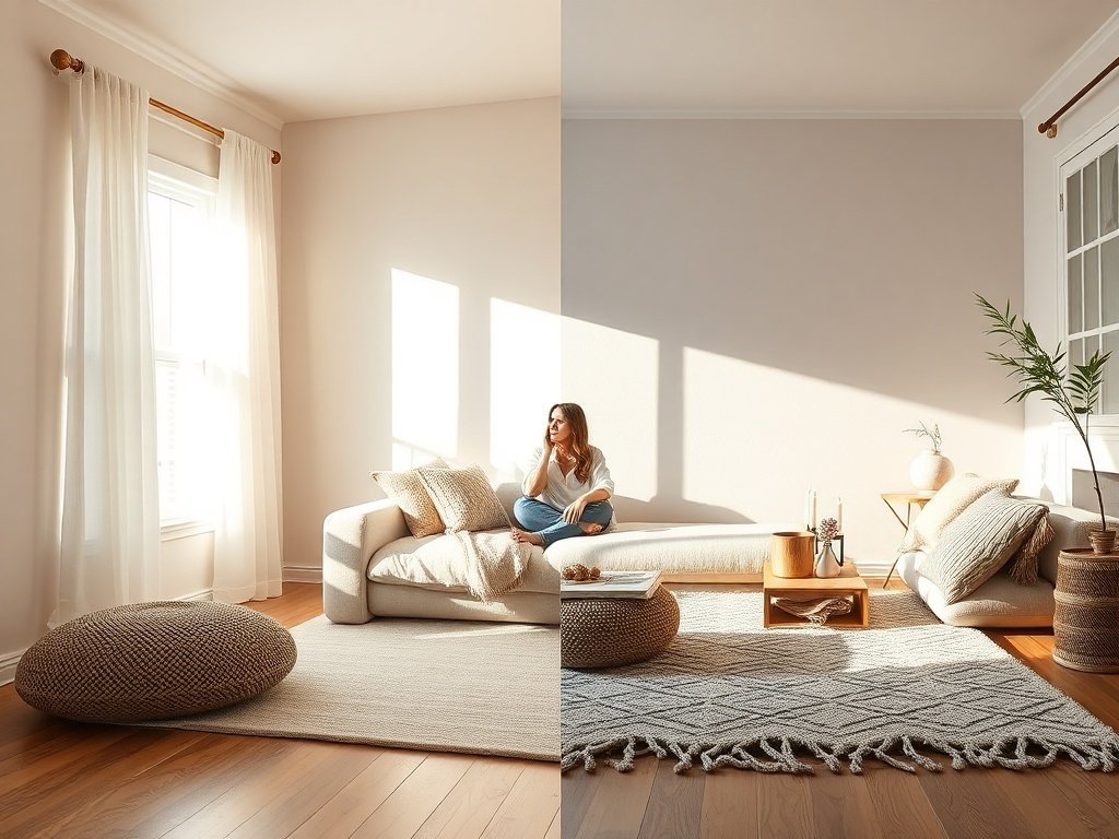 I can put out candles, pillows, and blankets, but if the floor is still bare, the room still feels like I never quite finished it. That empty center space quietly makes everything else look temporary.