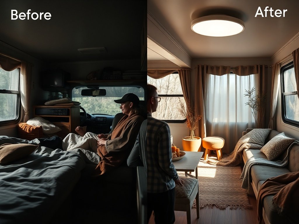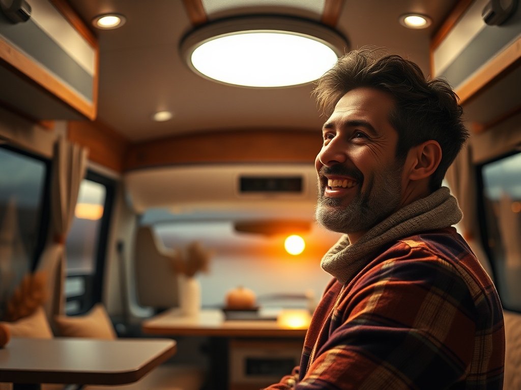😤 “I keep decorating for fall, but at night my RV still looks dim, cramped, and kind of cheap.” That’s the frustrating part: you can add the cozy throw blankets, the pumpkins, and the warm colors, but if the overhead light is weak, the whole space still feels unfinished the second the sun goes down.