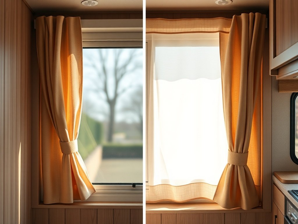 Instead of a bare opening, you get a fabric layer that softens the light and adds visual warmth. That small change makes the room feel less like a vehicle and more like a cozy little retreat.