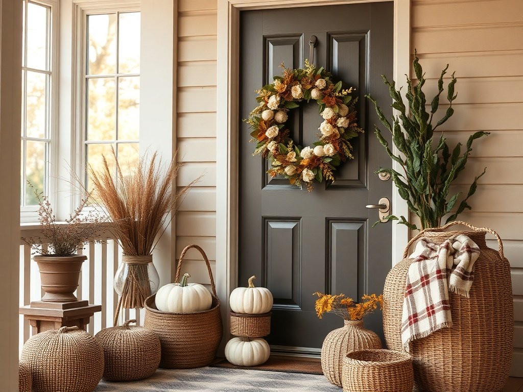 Proof: The neutral-to-warm autumn palette is flexible enough to sit beside pumpkins, lanterns, plaid, or simpler everyday porch decor.