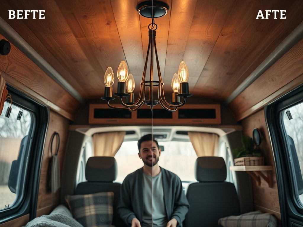 Home » How a $46.99 4-light rustic chandelier can make a camper van feel finished, warmer, and more intentional in one install