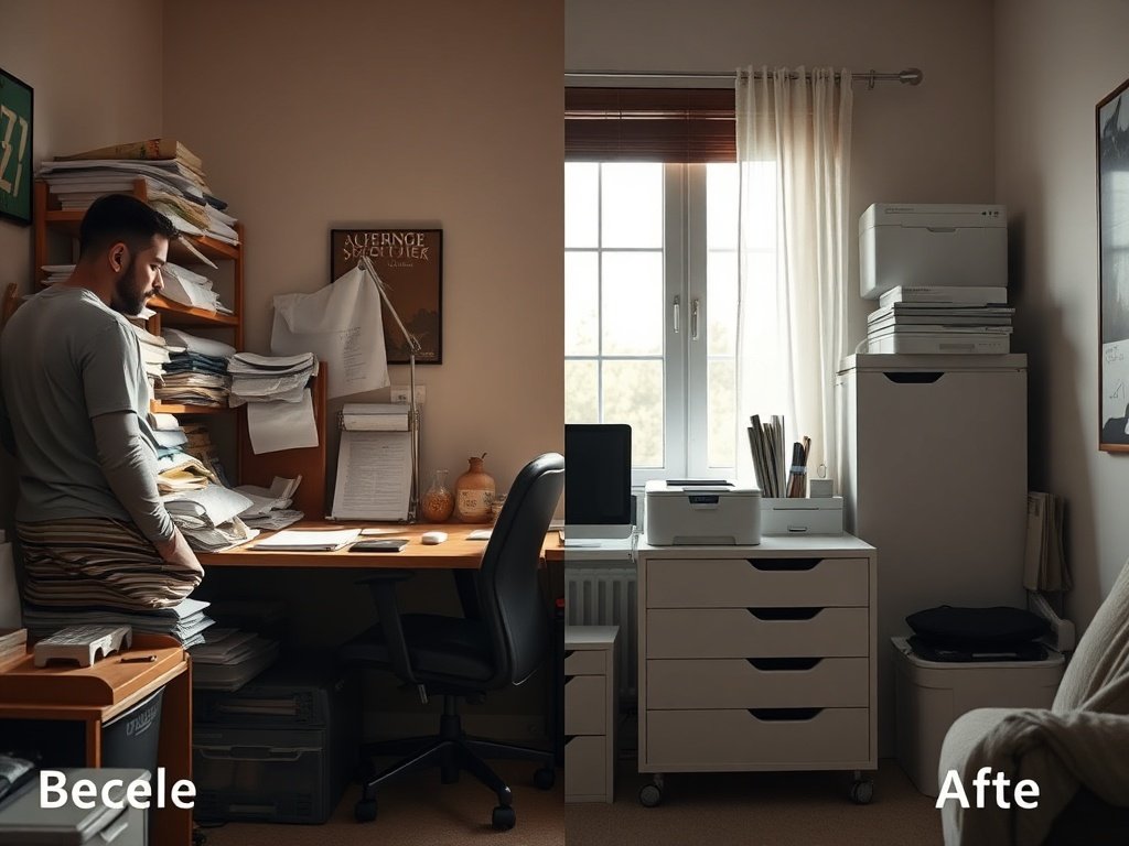 😤 “I keep telling myself I’ll deal with this later… and later never comes.” The invoices, notebooks, cables, and random papers start as one small pile, then suddenly the whole desk feels unusable. I can’t focus when every surface is covered, and the mess keeps reminding me I’m behind.