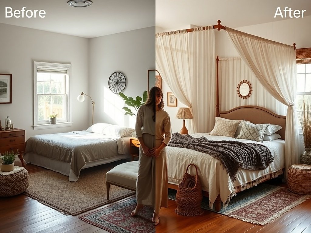 How a beige canopy bed can turn a plain bedroom into a cozy boho retreat in one upgrade