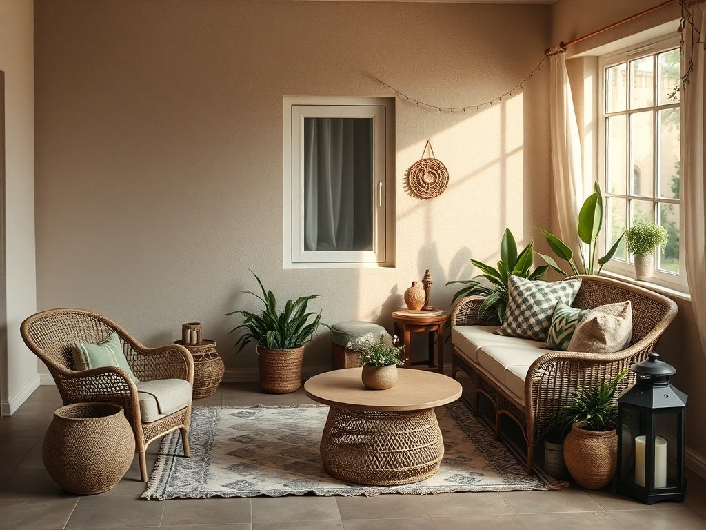 Proof: A neutral beige palette is one of the easiest starting points for boho styling because it mixes well with warm textures and natural accents.