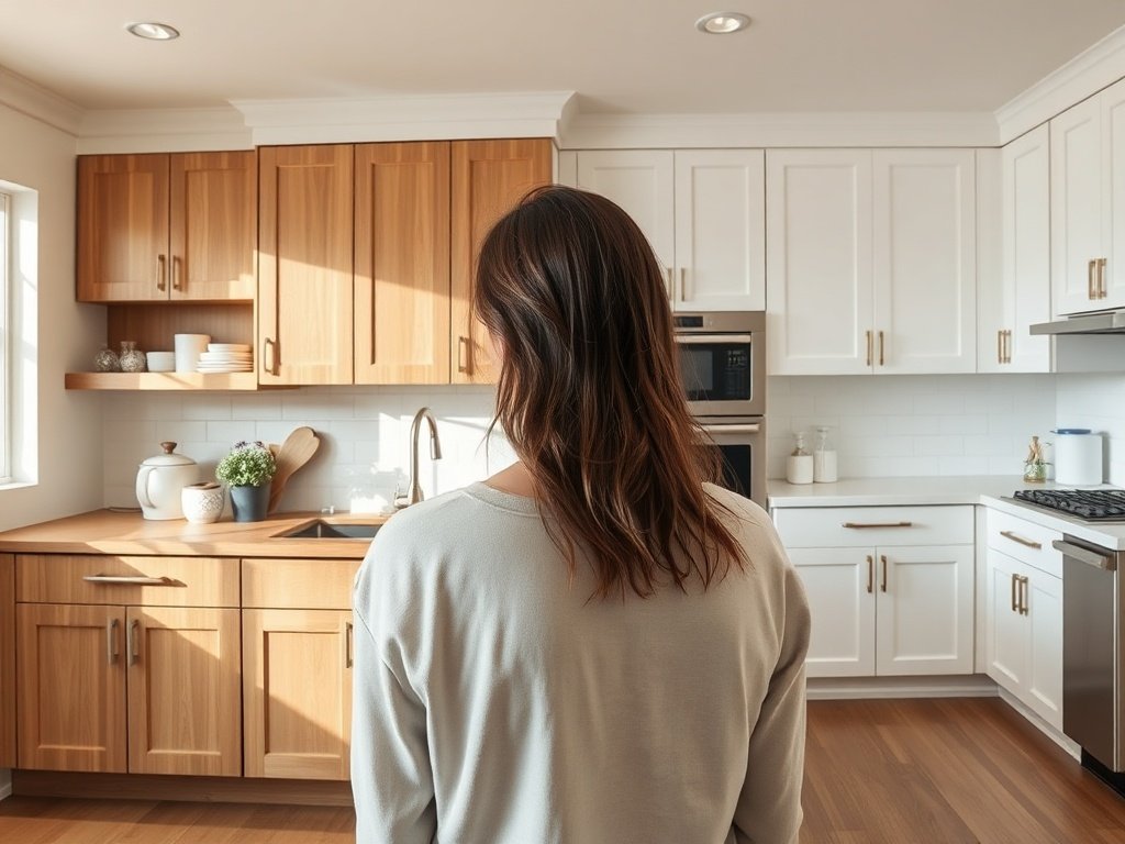😫 “I’m tired of walking into this kitchen and seeing cabinets that make the whole room feel older than it is.” The counters may be fine. The layout may work. But those honey-oak doors keep dragging the space back to another decade every time you open the room.