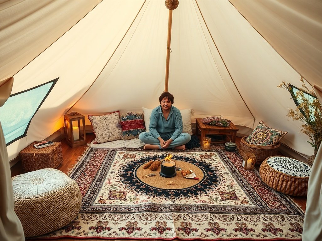 Unpack the 3M bell tent and set up a roomy central space for sleeping, lounging, and storing essentials without that constant feeling that everything is getting in the way.