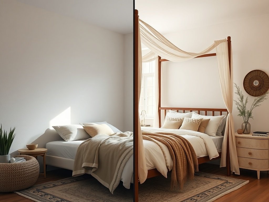 Turn a plain bedroom into a cozy boho retreat in one afternoon with a queen canopy frame that adds height, warmth, and instant style