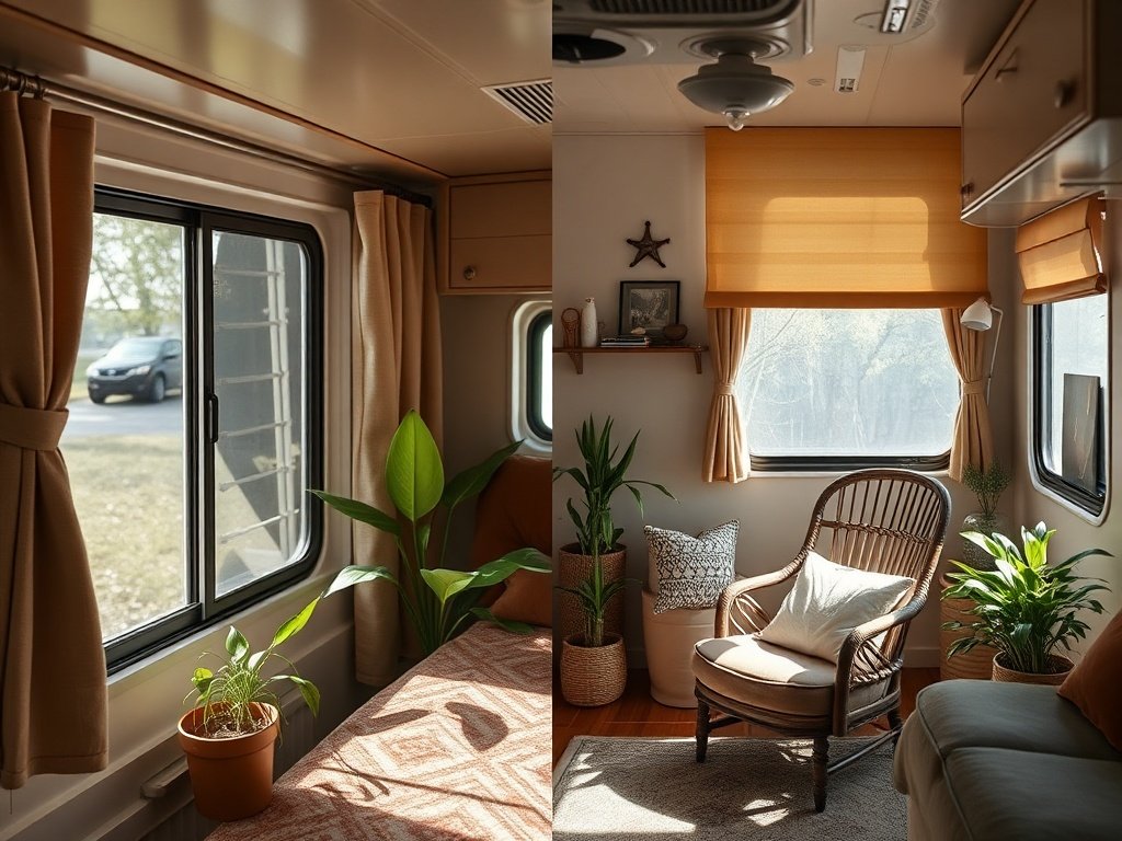 Turn one RV window into a cooler, calmer greenhouse retreat with a retractable shade that changes the light in seconds